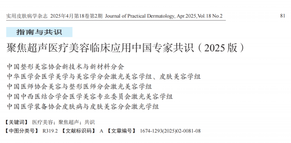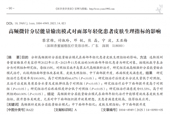 同年。黎京雄医生团队再次在《中国医疗美容杂志》上发表论文《微聚焦超声技术在提升面部皮肤治疗中的临床观察》,为设备临床应用提供关键循证依据。