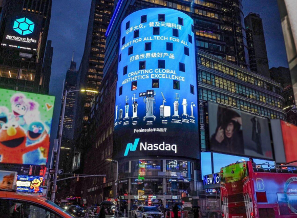 感恩节前夕,纽约时代广场的纳斯达克大屏出现了半岛医疗的品牌形象,在“世界的十字路口”展现中国医美科技力量。
